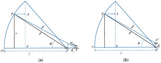 The optical path difference caused by the feed axial offset is schematically shown in Figure 4a, and the relation can be expressed as [24]: