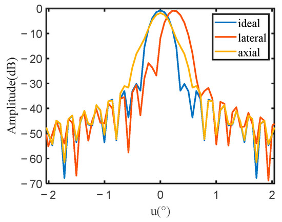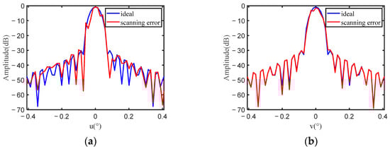 The far-field pattern caused by the scanning error: (a) u-plane intercept 2D far-field pattern; (b) v-plane intercept 2D far-field pattern.