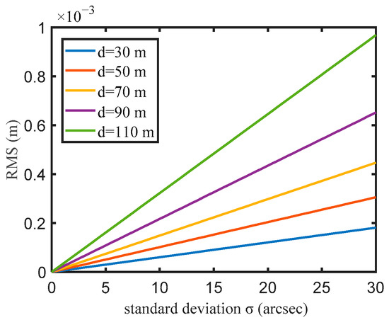 From Equation (16), it can be seen that the measurement error RMS is proportional to the standard deviation of the scanning error, and the measurement error RMS caused by the scanning error can be quickly calculated by this equation.