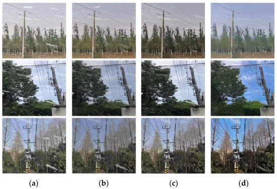 In the field of electric power, especially in complex environments or secluded areas, the utilization of unmanned aerial vehicles (UAVs) for surveillance, evidence collection, and external risk assessment is crucial for ensuring the safe operation of electrical facilities []. However, the quality of images acquired by UAVs is frequently compromised by adverse weather conditions, resulting in diminished clarity and subsequently reducing the accuracy and efficacy of detection []. This limitation significantly hinders the surveillance capacity of UAVs, potentially delaying the identification of risks [] or problems and posing a threat to the safety of electrical infrastructure. Consequently, enhancing the object detection performance of UAVs under adverse weather conditions is imperative.