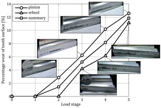 The pitting rate for the quenched and tempered gear pair (gear pair II) after each load cycle is presented in Figure 4.