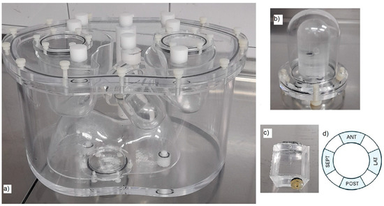 Figure 1c): coverage angle on a short-axis plane of 45°, 2 cm over the long-axis plane (45° × 2 cm). The myocardial insert, liver, and torso were filled with