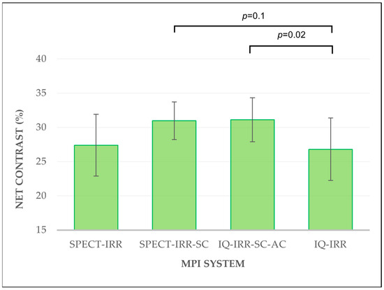 10] who reported a higher contrast in IQ-IRR-SC-AC compared with IQ-IRR. However, they reported considerably higher values (~20%). The contrast values obtained by IQ-IRR and SPECT-IRR are not significantly different, which is in line with findings reported by Imbert et al. (2012) [