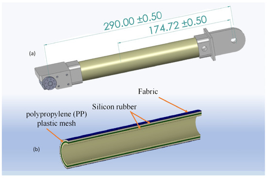 An innovative idea for the development of a collaborative 3DOF robot is presented by Stilli et al. using VSL. Using a hybrid of silicone rubber construction, polypropylene plastic mesh, and fabric materials, they have created links whose stiffness is controllable, and which are pneumatically actuated. These links can be adjusted to various stiffness levels by changing the pressure value within their structure, allowing the robot’s performance to be tailored to different applications [11,41].