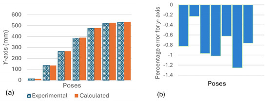 (a) Chart for the experimental position of end tip along y-axis of the manipulator and the calculated position for different poses. (b) Percentage error for y-axis.