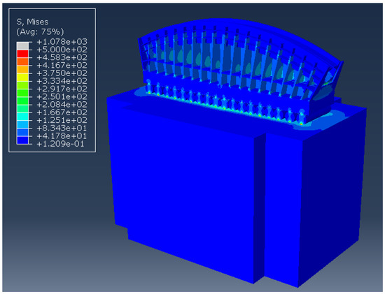 - The stress concentration phenomenon is prone to occurring in the rolling saddle because of the line contact in the contact area, and the rolling saddle is mainly subjected to vertical force, which is also consistent with the analysis of general mechanical characteristics. Thus, attention should be paid to the von Mises stress in the contact area between the saddle base and the roller shaft, the lower surfaces of both ends of the roller shaft, and the top surface of the tower, to avoid material damage.
