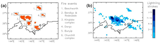 (a) Active fire and (b) lightning strike observations on Black Saturday, 7 February 2009 [11].