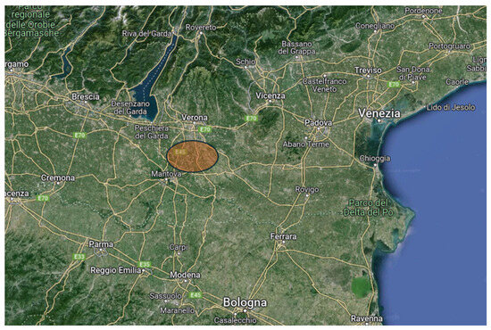 Emergency exercise location in the Mantua province territory (Source: Google Maps).