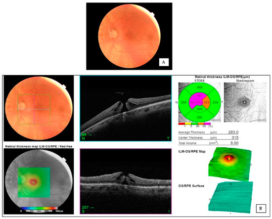 (A) FP non-mydriatic imaging; (B) report by OCT 3D macula.