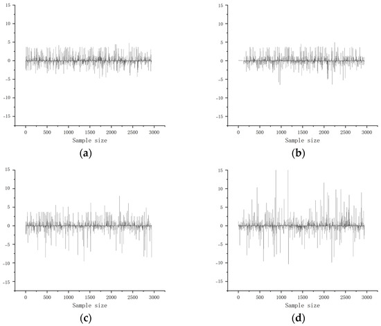 Wavelet packet decomposition is a time-frequency domain feature extraction algorithm that is able to observe frequency information in a small area of the frequency domain. Let be the reconstructed signal of the kth band of the jth layer obtained after wavelet packet decomposition of the original signal; then, its corresponding energy is as follows: