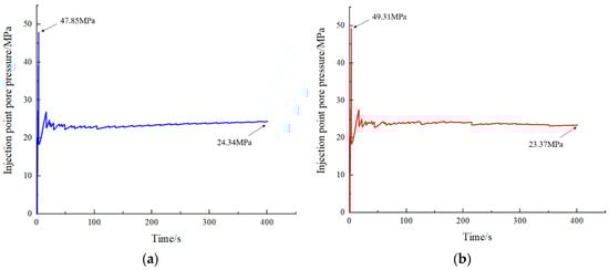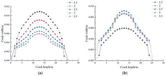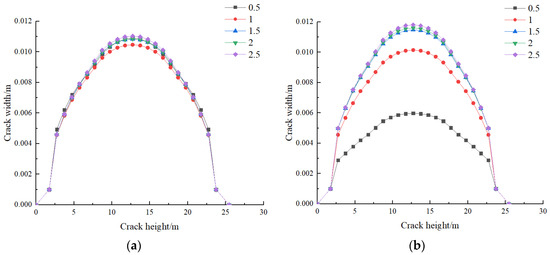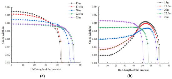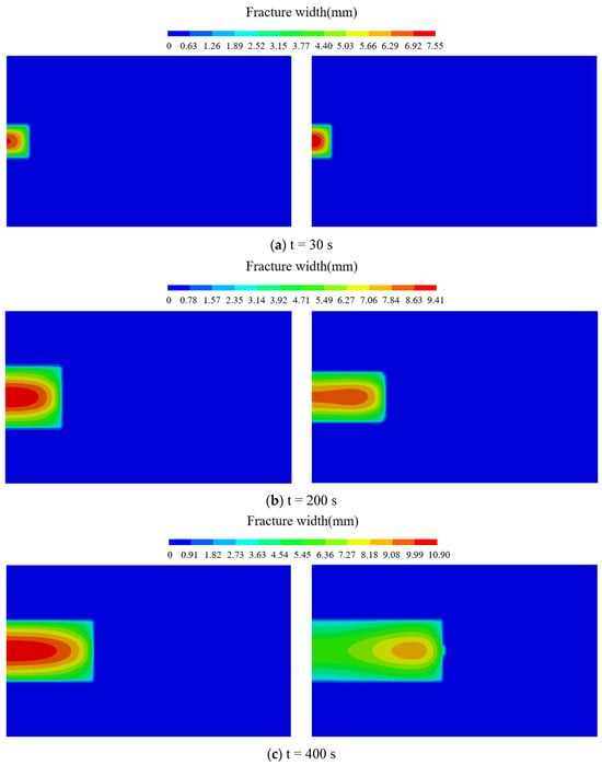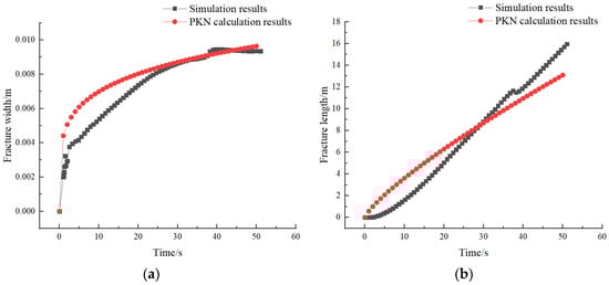 - At the initial stage of fracturing, the edge fracture starts to propagate when the injection pressure reaches 47.85 MPa, while the mid fracture starts to propagate at an injection pressure of 49.31 MPa. This indicates that there is a certain interaction between the fractures during the fracturing process. The propagation of the mid fracture in terms of width and height is influenced by the edge fracture. With the same amount of fracturing fluid injection, the length of the mid fracture will be greater than that of the edge fracture.