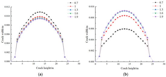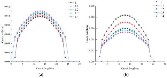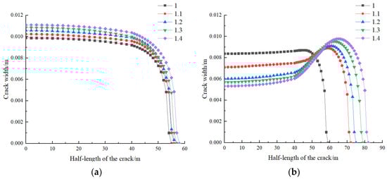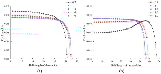 - The elastic modulus has a significant impact on the edge fracture. As the ratio of elastic moduli increases, the width of the edge fracture decreases while the length increases. When the ratio of elastic moduli is small, the mid fracture is longer and narrower. When the ratio of elastic moduli is large, the length of the mid fracture decreases while the width increases, but the impact is relatively small. As the ratio of Poisson’s ratios increases, the morphology of the edge fracture changes less, while the width of the mid fracture increases and the length decreases. When the ratio of Poisson’s ratios reaches a certain value, the influence on the fractures is basically negligible. An increase in the ratio of permeabilities allows more fracturing fluid to enter the formation, reducing the interaction between fractures. This has a minimal impact on the edge fracture, while promoting a better expansion of the mid fracture.
