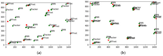 We additionally imported some example images of the predictions in Figure 6. The four correct coordinates are shown in red, and each prediction is shown in green, with the name of the model used next to it. Looking first at Figure 6a, we can see that AFF-Net tends to make some predictions for each coordinate. However, in the case of ResNet18, it tends to deviate a lot from the actual coordinates. In the case of iTracker, the top-right and bottom-left coordinates are predicted in a somewhat valid range, but the top-left and bottom-right coordinates are incorrect, just like ResNet18. On the other hand, we can see from Figure 6b that when the training is performed by applying a penalty for area through the ensemble-loss function, all three models make a good range of predictions.