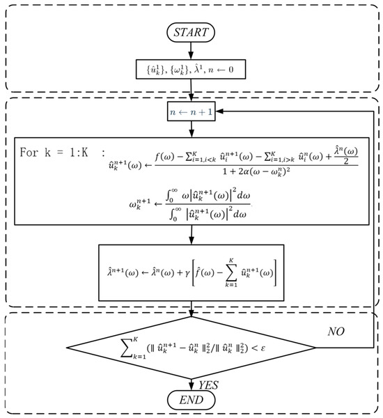 The comprehensive algorithmic flowchart of the Variational Mode Decomposition (VMD) algorithm is illustrated in Figure 2 below: