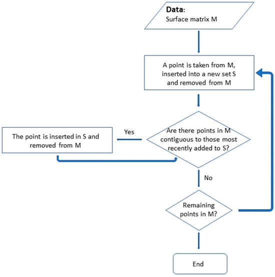Once no more elements are added to S, the surface is considered complete, and a new non-zero element is taken in M. The algorithm ends when there are no more non-zero elements in M to add to an equivalence class.