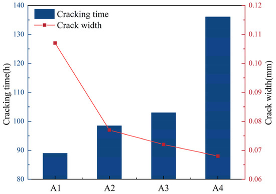 Mortar initial cracking time and crack width diagram.