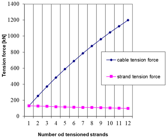 Analytical solutions for forces and deformations for individual tensioning of strands in one or more cycles, according to the model depicted in Figure 4, are presented in the papers [26,29].