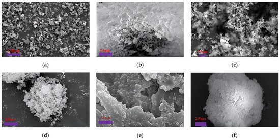 Original fly ash (a), fly ash without mineralization after soaking (b), mineralization without soaking (c), mineralization after soaking 24 h (d), mineralization after soaking 48 h (e), mineralization after soaking 72 h (f).
