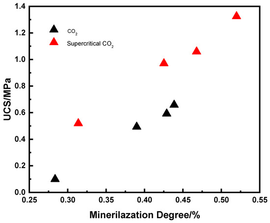 - The compressive strength initially sharply increases with the mineralization degree, followed by a slight decrease.