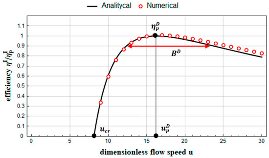 According to Equations (16) and (39c), the efficiency of a system with one degree of freedom with a nominal speed equal to the nominal speed of the GEH2D is equal to