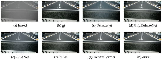 - Chen, D.; He, M.; Fan, Q.; Liao, J.; Zhang, L.; Hou, D.; Yuan, L.; Hua, G. Gated context aggregation network for image dehazing and deraining. In Proceedings of the 2019 IEEE Winter Conference on Applications of Computer Vision (WACV), Waikoloa, HI, USA, 7–11 January 2019; IEEE: Piscataway, NJ, USA, 2019; pp. 1375–1383. [Google Scholar]