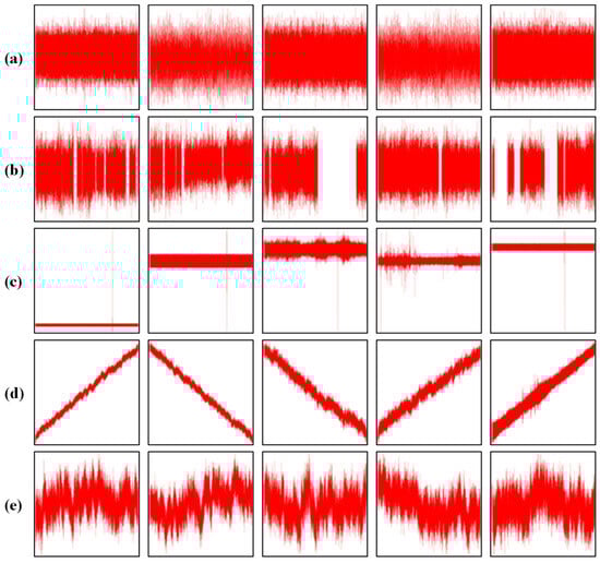Other issues in the data anomaly detection process are discussed in this section. Although the accuracy of the CNN-based classification was high, false detections were observed, as shown in Figure 16. Because the converted images were used as inputs to the CNN, data with similar shapes can be misclassified, as shown in Figure 21. For example, an image of impulse responses belonging to the Normal class (see Figure 21a) can be classified as Outlier by the CNN-based method.
