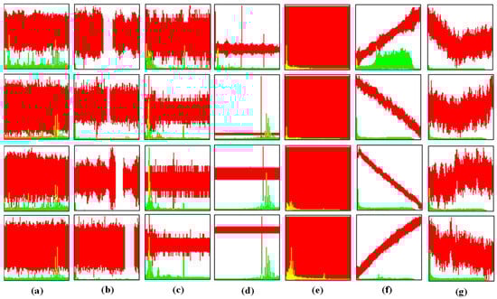 Examples of dual-channel images: (a) Normal, (b) Missing, (c) Minor, (d) Outlier, (e) Square, (f) Trend, and (g) Drift.