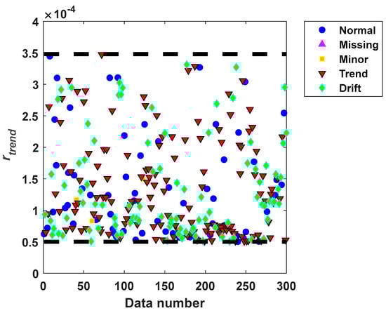 Although proper definitions for classifying the measured data into various classes are provided in Section 3.1, ambiguity exists in the data anomaly classes for a certain dataset. For example, the Trend and Drift classes have intrinsic ambiguities because the threshold values for rtrend and ddrift cannot be selected perfectly, causing difficulties in labeling data for CNN-based classifications. Further discussion on this issue is provided in a later section.