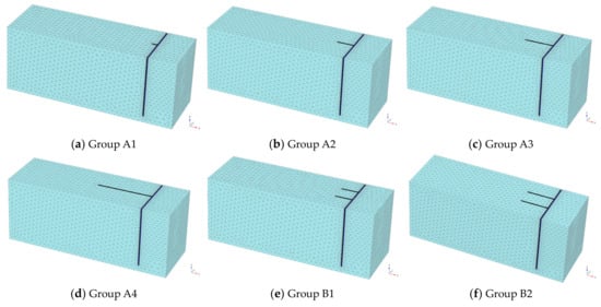 The three-dimensional numerical models are established using the finite element method (FEM) with Plaxis 3D software (version 2024.1.0.1060). The geometry of the numerical model aligns with the model test (Figure 9). The numerical models have dimensions of 3 m in length, 1 m in width and 1.5 m in depth. Over 38,000 elements are utilized, ensuring that the model responses are mesh-independent. The soil consists of 10-node units, and the modified cam-clay model is used as constitutive model. The unit weight of soil is set at 18.5 kN/m3. The parameters M, λ and κ are assigned to the values of 1.385, 0.052 and 0.022, respectively, according to the consolidated undrained triaxial shear testing data. The sheet piles are modeled by the equivalent stiffness method as a rectangular plate employing a 2D plate unit. The pipe piles and the anchor rod are modeled by a 1D embedded beam unit and a 1D beam unit.