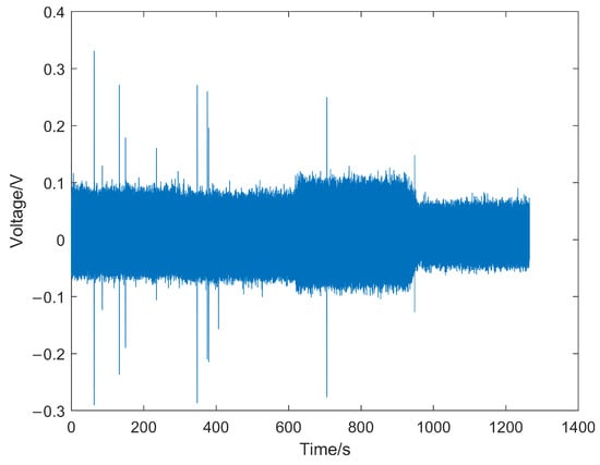 In this paper, a domestic triple-coils inductive sensor is utilized, as illustrated in Figure 2. The raw monitoring signal is acquired by the domestic inductive monitoring system in the test runs of an aero-engine of a certain type. However, the amount of debris detected by the sensor is more than the actual amount of debris, which means a false alarm. Therefore, a new signal processing method is proposed to reduce the false alarm rate. The raw monitoring signal in a test is illustrated in Figure 3, of which the sample rate is 24.5 kHz.