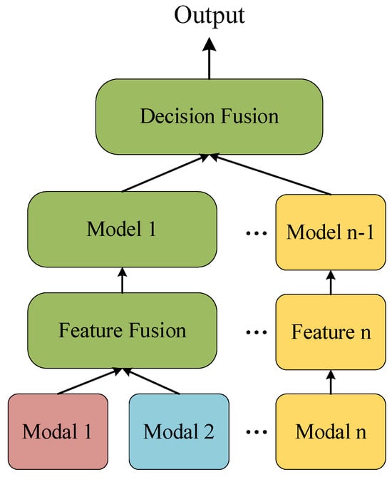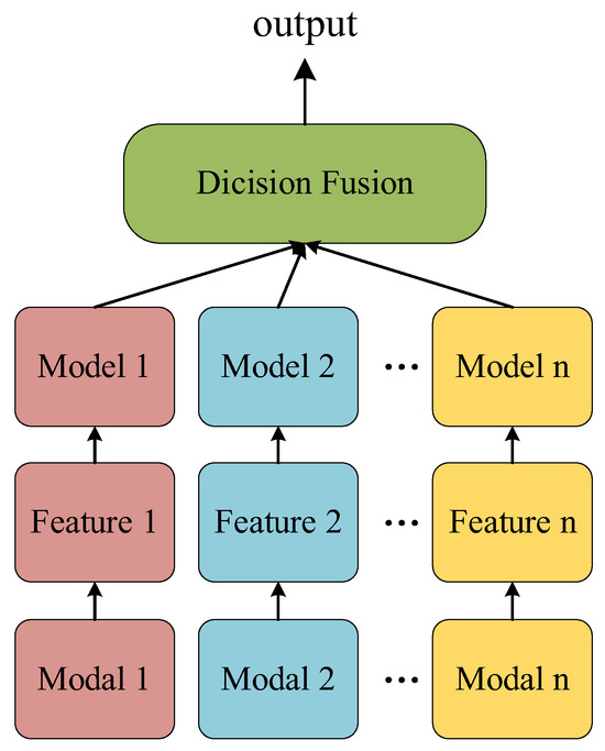 However, late fusion also presents some challenges, with the most significant being increased computational costs and model complexity. Since each modality requires independently designed and trained specialized models, this may result in higher computational and storage overheads. Therefore, in practice, it is necessary to carefully design the model structure to balance performance and complexity and fully utilize existing computational resources. The schematic diagram of late fusion is illustrated in Figure 2.