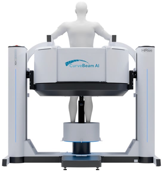Example of a WBCT device with flexible gantry and ability to acquire the whole lower limb and the upper limb up to the elbow, including (HiRise™, image courtesy of CurvebeamAI, Hatfield, PA, USA).