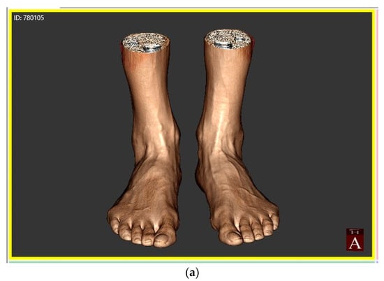 - Lintz, F.; Welck, M.; Bernasconi, A.; Thornton, J.; Cullen, N.P.; Singh, D.; Goldberg, A. 3D Biometrics for Hindfoot Alignment Using Weightbearing CT. Foot Ankle Int. 2017, 38, 684–689. [Google Scholar] [CrossRef]