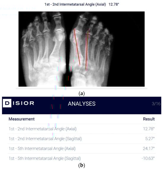 - Day, J.; de Cesar Netto, C.; Richter, M.; Mansur, N.S.; Fernando, C.; Deland, J.T.; Ellis, S.J.; Lintz, F. Evaluation of a Weightbearing CT Artificial Intelligence-Based Automatic Measurement for the M1-M2 Intermetatarsal Angle in Hallux Valgus. Foot Ankle Int. 2021, 42, 1502–1509. [Google Scholar] [CrossRef]