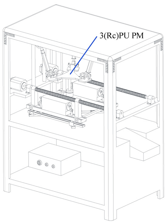 The various mobility configurations of the 3(Rc)PU PM increase its adaptability in tasks with multi-stages. Figure 5 shows a concept of a reconfigurable production center by installing the 3(Rc)PU PM into the production platform to produce products of different specifications to meet the individual needs of the customer. When the product is relatively complex, the reconfigurable production center can be configured as 5-DOF or 6-DOF to perform the task; when the product is relatively simple, in order to avoid consuming a lot of energy, the reconfigurable production center can be configured as 3-DOF to complete the corresponding production actions. The reconfigurable production center would provide different solutions for the productive process of products.