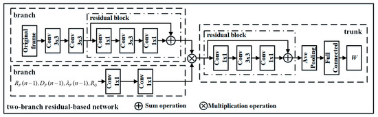 To make full use of the temporal correlation, a two-branch residual-based network for bit rate ratio prediction is designed, and it is shown in Figure 3.