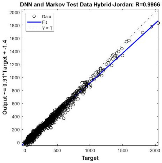 This section presents description of the experimental results, as well as the experimental conclusions drawn from this research. The fuzzy logic classifier was built on the data models from the first part of the experiment of this work. The hybrid model (DNN–Markov) results are shown in Table 5 and Table 6, and Figure 7 and Figure 8. More details about the fuzzy logic classifier are explained in the following subsections.