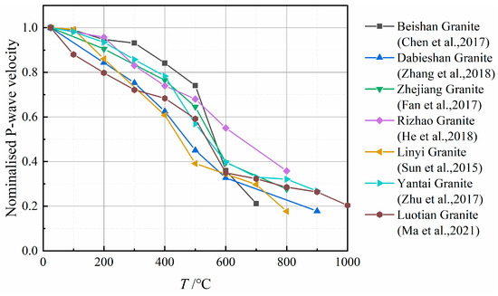 - Zhu, S.; Zhang, W.; Sun, Q.; Deng, S.; Geng, J.; Li, C. Thermally induced variation of primary wave velocity in granite from Yantai: Experimental and modeling results. Int. J. Therm. Sci. 2017, 114, 320–326. [Google Scholar] [CrossRef]