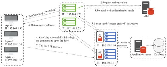 Access Control (AC): The AC is the execution component of access control, which is usually implemented as a server program. The AC enforces a default “deny all” security policy and ensures the network invisibility of protected resources. It is responsible for granting access rights (such as IP address, port number, etc.) to authorized Agents, revoking access rights from Agents that have lost authorization, and executing release actions for Agents based on parameters returned by the Server.