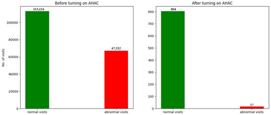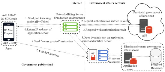 The experimental results demonstrate the effectiveness of the AHAC service in enhancing network security. As shown in Figure 10, before enabling AHAC, the scanning tool detected 30 exposed ports on the API server. After activation, no exposed ports were detected, achieving a “network cable unplugging” security effect. Figure 10 illustrates that abnormal or invalid network traffic decreased from 37 percent to 2 percent post-AHAC activation. By integrating the AHAC SDK and enabling zero trust, the server address is dynamically returned and no longer exposed in the front-end code, effectively protecting against DDoS attacks. AHAC used in governmental scenarios is shown in Figure 10.