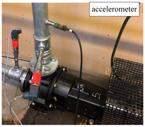 Centrifugal pumps are widely used in industrial enterprises such as the electric power and chemical industry due to their simple structure, convenient operation and uniform flow. During the use of centrifugal pumps, fluid or mechanical failures often occur, causing abnormal vibration. In engineering applications, through vibration monitoring, the running state of the pump can be monitored, faults can be diagnosed, and maintenance suggestions and treatment measures can be given to ensure the safe operation of the pump [1,2]. Common failure forms of centrifugal pumps include bearing wear, blade failure, pump shaft imbalance, misalignment, water hammer, cavitation, dry rotation, etc. [3,4]. Among them, water hammer failure is sporadic and difficult to monitor. However, when a water hammer failure occurs, pressure in the pipeline rises sharply, causing serious accidents such as valve damage and pipeline bursts. Effective and accurate monitoring of water hammer failure is of great significance for ensuring equipment safety and improving pump and pipeline design.