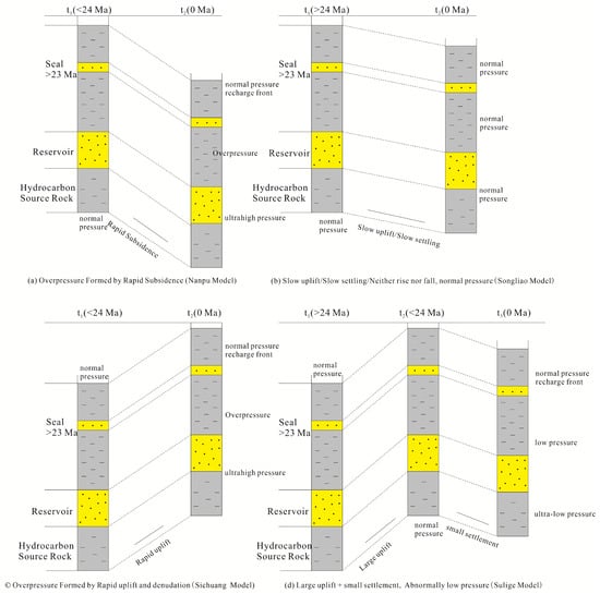 - The active overpressure model of rapid subsidence is known as the Nanpu Model, as shown in Figure 6a.