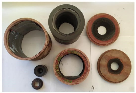 Figure 9 illustrates the parts after the disassembly. Then, the mass of each component is evaluated to estimate the amount of material involved in the combustion. The sum of the burned mass contributions is called the fuel mass (