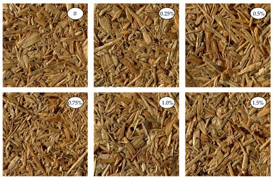 Particleboard is an example of an engineered wood product that was invented in the first half of the 20th century. In most cases, it is composed of wood (mainly softwood) or other lignocellulosic materials. Even though significant time has passed since its invention, its worldwide production still reaches over 100 million m3 annually, and it is expected to grow to 122 million m3 by 2029 [1]. Asia and Europe are the largest producers of particleboard. In Europe, the leaders are Germany, Poland, Italy, Austria, and France [2]. In the case of particleboards used to produce furniture for indoor use, their production has reached almost 30 million m3 per year in Europe alone [1]. Such high production capacity also requires the supply of a considerable amount of binding agents. Urea–formaldehyde (UF) resin is mainly used to produce boards for indoor applications. It is obtained as a product of the condensation of formaldehyde and urea, which demonstrate very good properties such as high strength in dry conditions, a wide range of curing temperatures, light color, ease of handling, and availability at relatively low prices. Due to these properties, its production accounts for 85% of the production of all amino resins globally [3,4,5].
