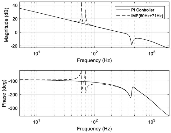 Open–loop transfer function of IMP-based controller (at 60 and 71 Hz).