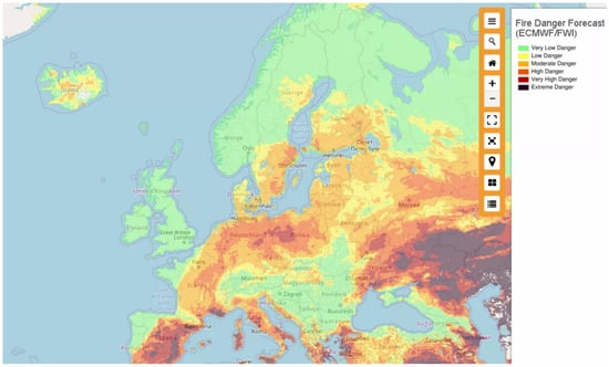 EFFIS fire danger forecast on 25 June 2019 for Europe [].
