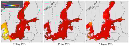 Radiation budget for the Baltic Sea on 22 May, 25 July, and 5 August 2019 [].