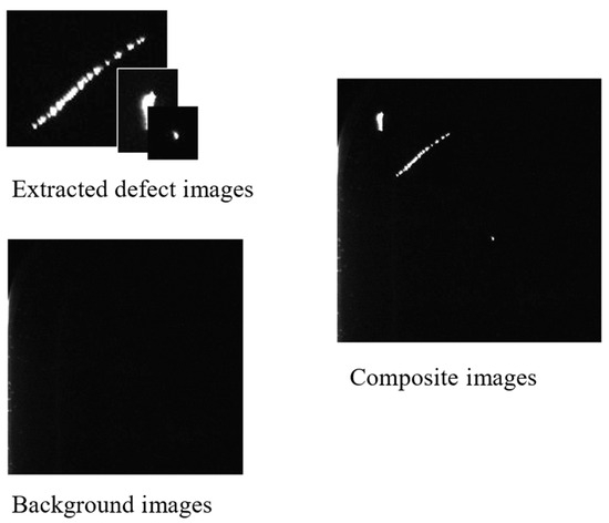 The defect mask image, generated after image segmentation, is a binary image composed of 0 and 1. We multiply the original image with the mask image to acquire a completely extracted region with only the defect itself, and then eliminate the background area. If an image with a size of