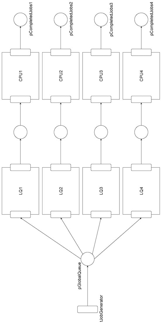 This paper assesses five distinct scheduling algorithms in a multiprocessor environment using this simulation platform based on Petri modules. This paper evaluates fundamental schedulers such as first come first serve (FCFS), shortest job first (SJF), and round robin (RR). Additionally, this paper analyzes more sophisticated schedulers like multi-level feedback queue (MLFQ) and Linux’s completely fair scheduler (CFS) [3]. Through a comprehensive comparison across diverse workloads, our objective is to assess the performance of these schedulers, focusing on key metrics like turnaround time and response time. Given its implementation in the Linux kernel, the CFS serves as a valuable benchmark for comparing against less complex scheduling algorithms such as FCFS, SJF, and RR.