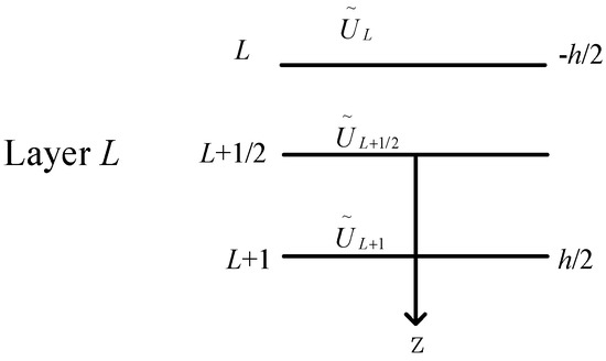It is assumed that the displacement inside any thin-layer element is linearly or conically distributed along the vertical axis, corresponding to the primary and quadratic functions respectively. Take the quadratic function as an example, an intermediate section (L + 1/2) to the upper and lower sections of a thin-layer element L with thickness h is added as shown in Figure 3. The displacements of the three sections are , and , respectively.